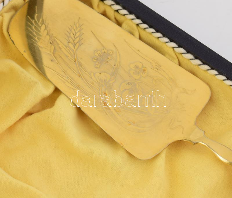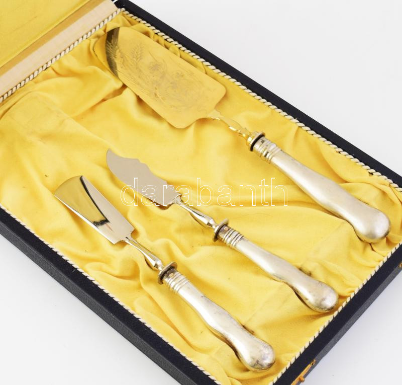 Sütemény és desszert szervírozó készlet. Ezüst (Ag) nyéllel. jelzett, díszdobozban