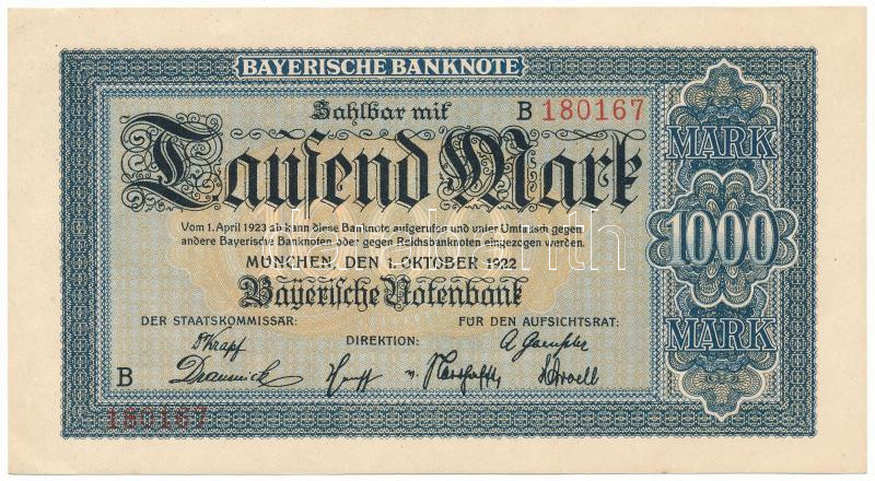 Német Birodalom / Weimari Köztársaság / Bajorország 1922. 1000M T:AU,X... https://www.darabanth.com/en/477-Online-auction/477.0/Numismatics/Emergency-Coins-and-Notes~500008/Nemet-Birodalom-Weimari-Koztarsasag-Bajororszag-1922-1000M-TAU-XF-German-Empire-Weimar-~II3248074