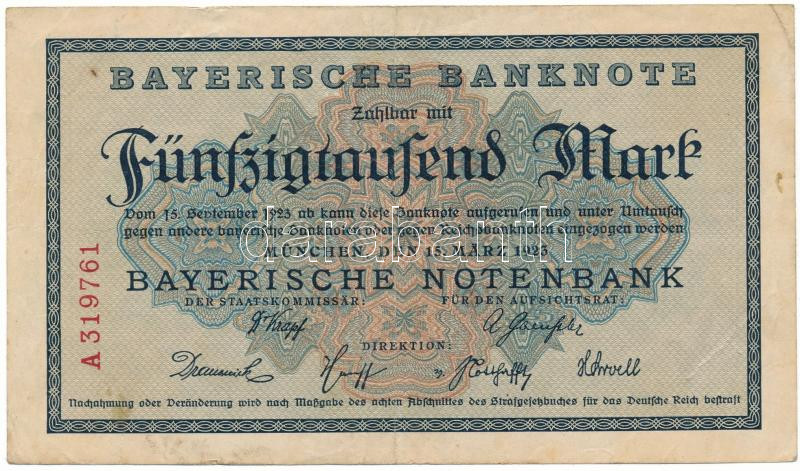 Német Birodalom / Weimari Köztársaság / Bajorország 1923. 50.000M T:F German Empire / Weimar Republic / Bavaria 1923. 50.000 Mark C:F Krause P#S927