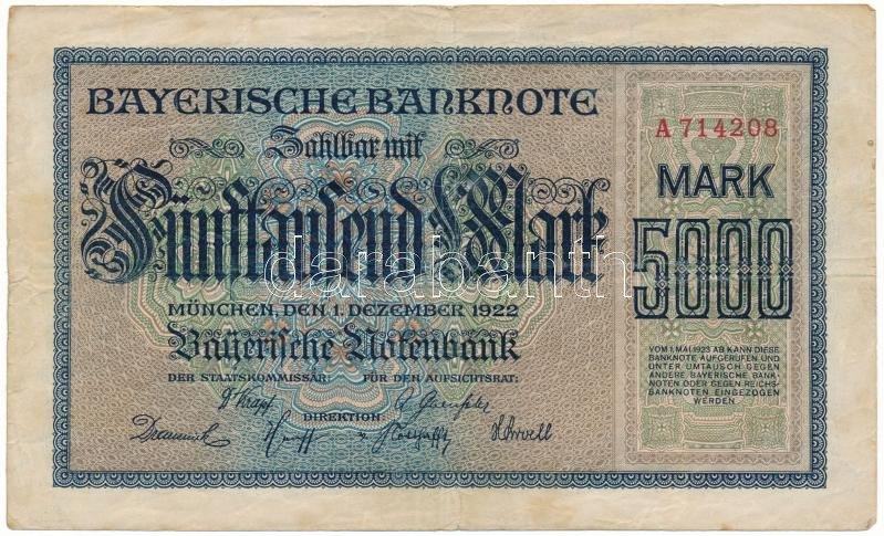 German Empire / Weimar Republic / Bavaria 1922. 5000 Mark C:F