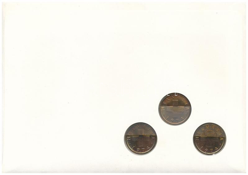 Svájc 1974. 2r bronz (3x) felbélyegzett borítékon, bélyegzéssel T:UNC,AU patina Switzerland 1974. 2 Rappen bronze (3x) in envelope with stamp C:UNC,AU patina
