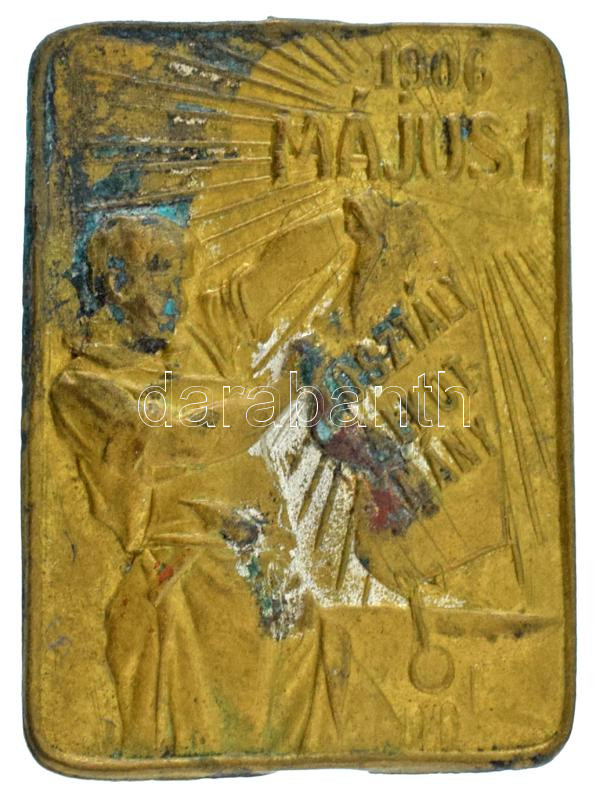 1906. "1906 - Május 1." sárgaréz lemezjelvény (24x33mm) T:XF
