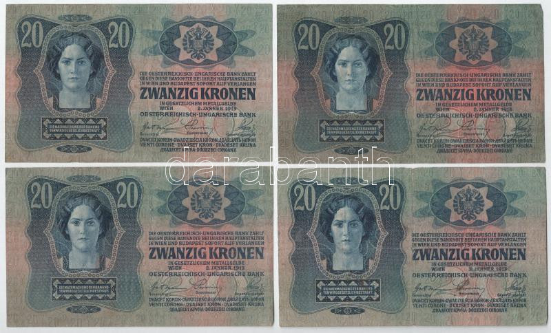 https://www.darabanth.com/en/477-Online-auction/477.0/Numismatics/Hungarian-Banknotes~500009/1913-20K-4x-mind-felulbelyegzes-nelkul-TF-VG-Adamo-K17~II3243141
