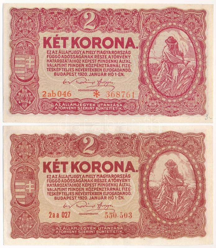 https://www.darabanth.com/en/477-Online-auction/477.0/Numismatics/Hungarian-Banknotes~500009/1920-2K-2aa-plus-2K-2ab-TF-AU~II3243835