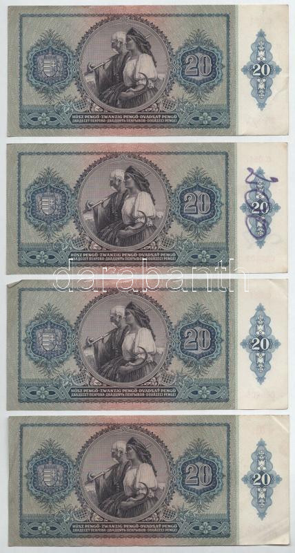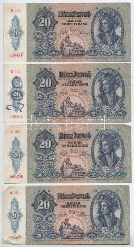 1941. 20P (4x), benne 2db sorszámkövető pár "C 051 068401 - 06840...