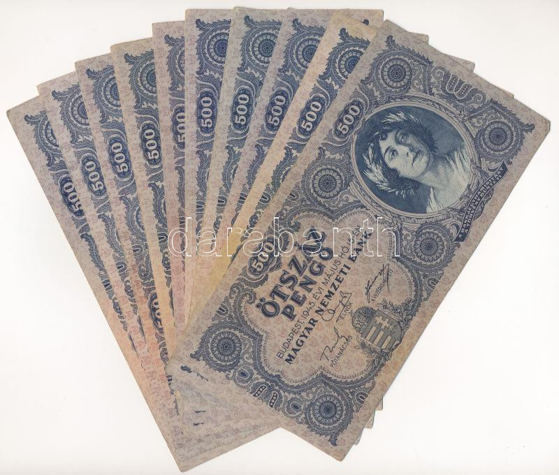 https://www.darabanth.com/en/477-Online-auction/477.0/Numismatics/Hungarian-Banknotes~500009/1945-500P-10x-kozte-K-288-000126-alacsony-sorszamu-TF--Adamo-P19~II3243234