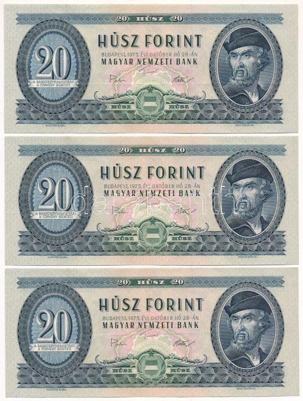 1975. 20Ft "C 341 081883 - C 341 081885" (3x) sorszámkövetők T:UNC