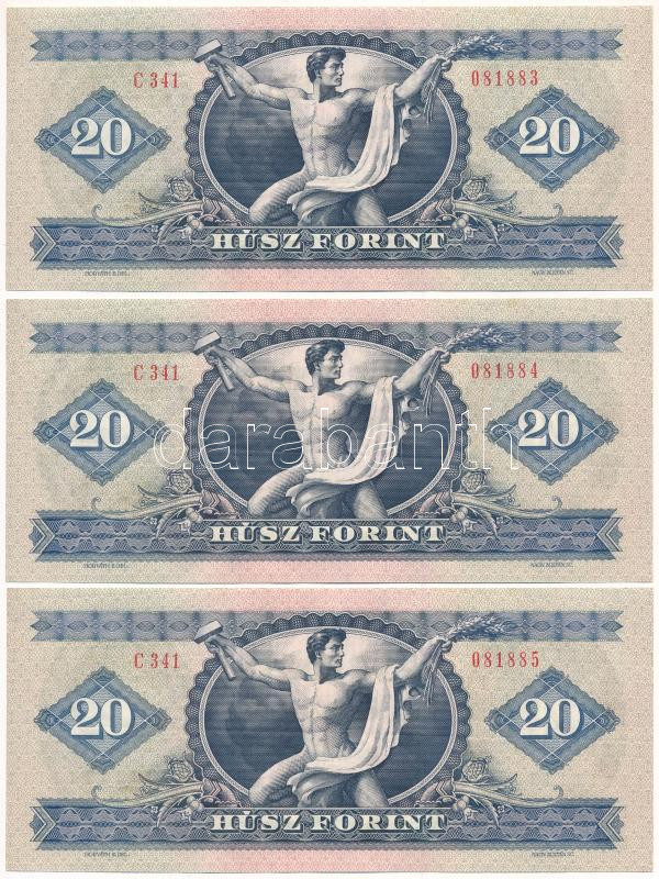 1975. 20Ft "C 341 081883 - C 341 081885" (3x) sorszámkövetők...