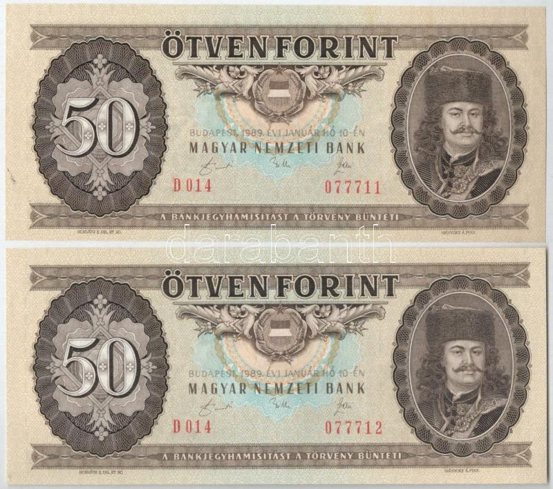 1989. 50Ft (2x) sorszámkövető "D 014 077711 - D 014 077712" T:UNC Adamo F23