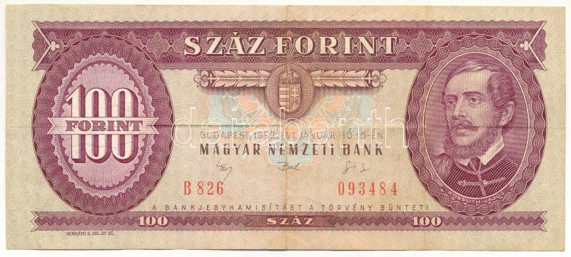 1992. 100Ft "B 826 093484" nyomdai papírráncokkal T:F erős papír Adamo F37