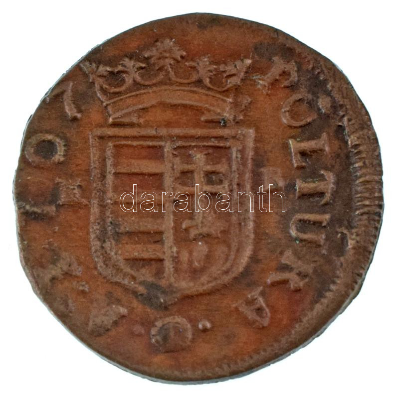 1707K-B Rézpoltúra "II. Rákóczi Ferenc" Körmöcbánya (2,18g) T:XF patina Hungary 1707K-B Poltura Cu "Francis II Rákóczi" Kremnitz / Kremnica (2,18g) C:XF patina Huszár: 1549., Unger II.: 1139.a