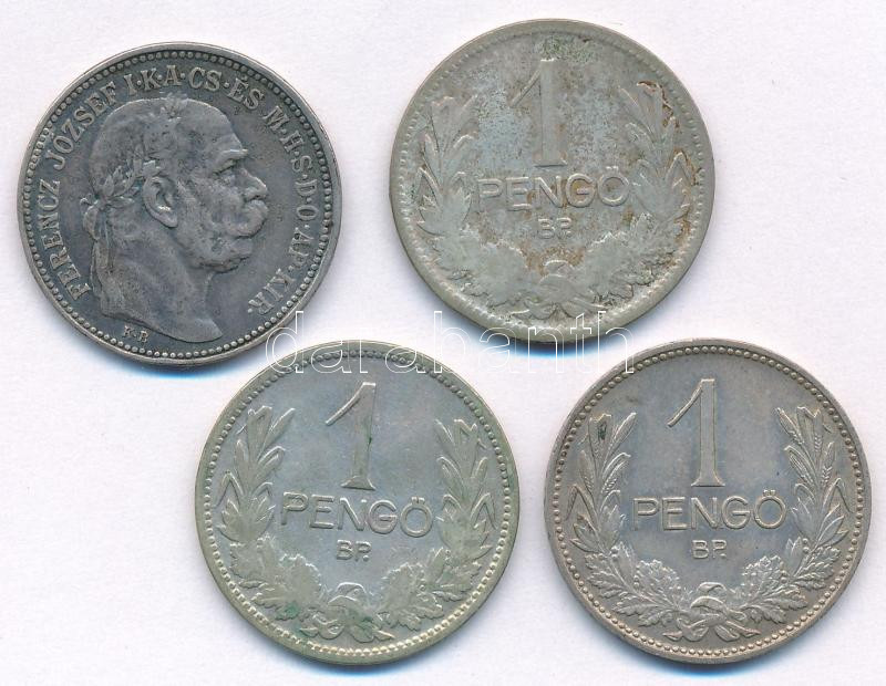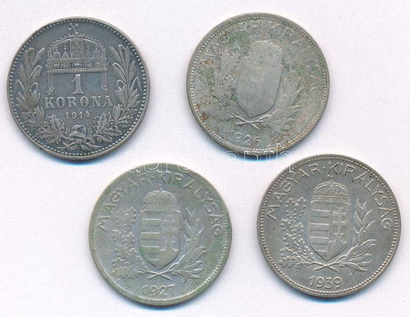 1914KB 1K Ag "Ferenc József" + 1926. 1P Ag + 1927. 1P Ag + 1939. 1P Ag T:XF-F patina
