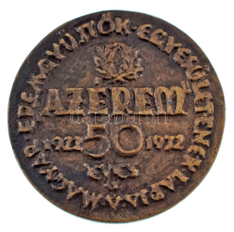 Csúcs Ferenc (1905-1999) 1972. "AZ ÉREM - jubileumi érem II"... https://www.darabanth.com/en/477-Online-auction/477.0/Numismatics/Hungarian-commemorative-medals-and-plaques~500012/Csucs-Ferenc-1905-1999-1972-AZ-EREM-jubileumi-erem-II-ketoldalas-ontott-bronz-emleke~II3250928