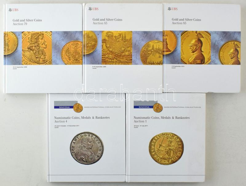 Vegyes 5db-os numizmatikai árverési katalógus tétel, ebből 3db UBS és 2db Sincona
