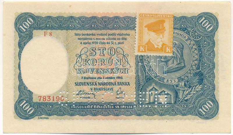 Csehszlovákia 1945. (1940) 100K "SPECIMEN" perforációval és ...
