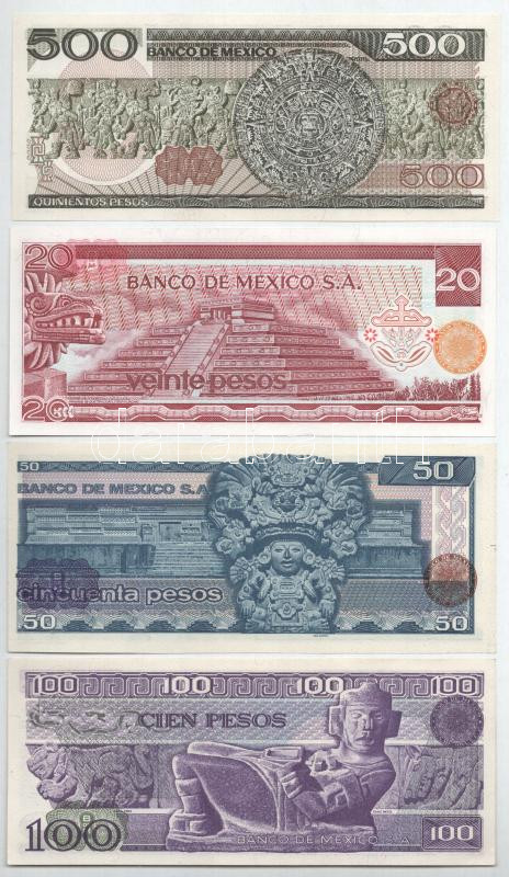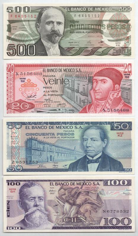 Mexico 1976. 10 Pesos + 1981. 50 Pesos + 100 Pesos + 1984. 500 Pesos C:UNC-AU