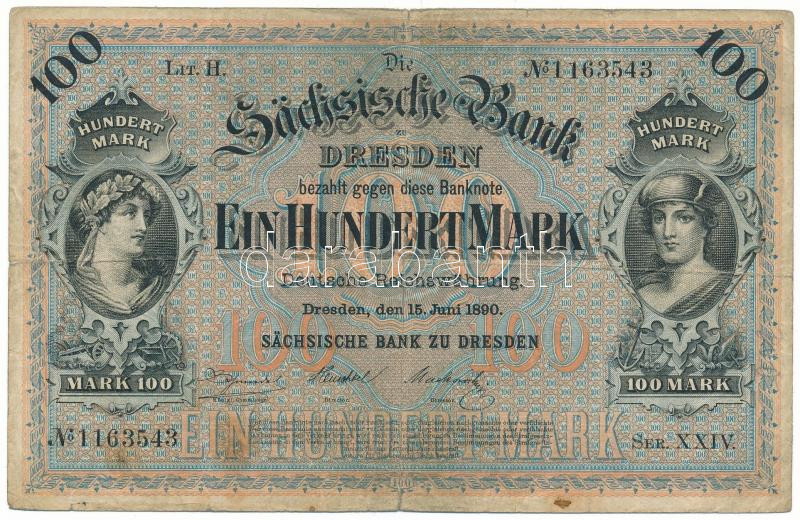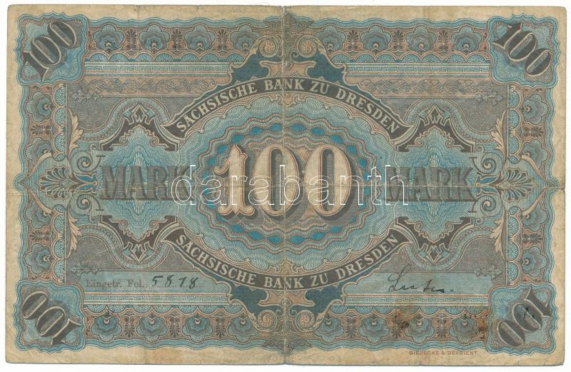 Description: Német Birodalom / Szászország 1890. 100M "hétjegyű sorozatszám" T:F,VG