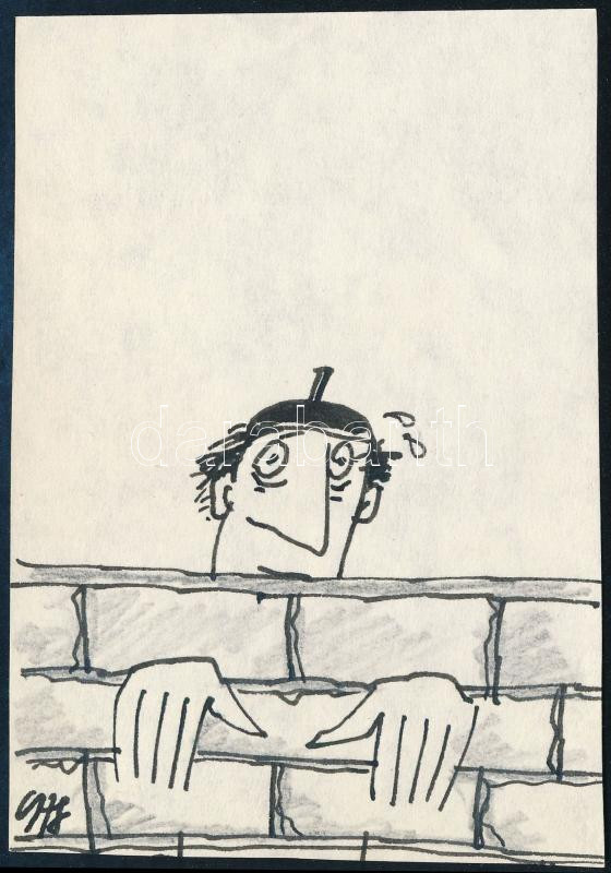 Csehi János (1952-1998): Kőmives Kelemen (karikatúra). Tus, papír, jel...