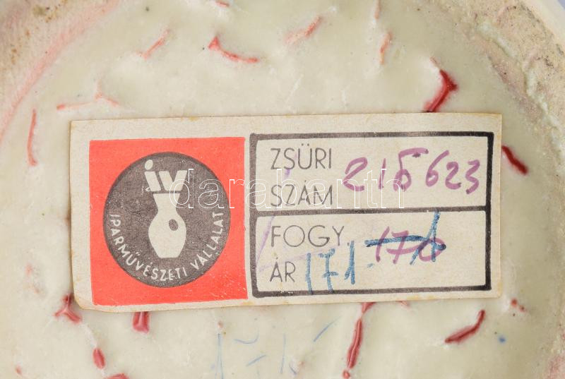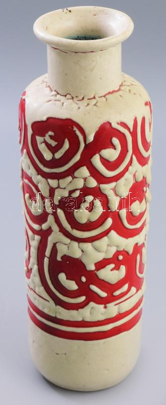 Erdélyi István: Vörös alapon krémfehér mázas váza, zsűri címkével, 31,...