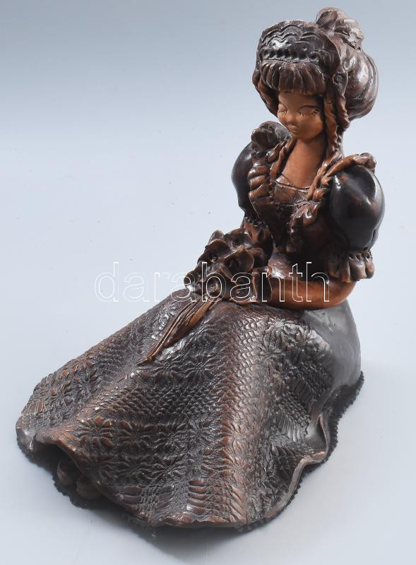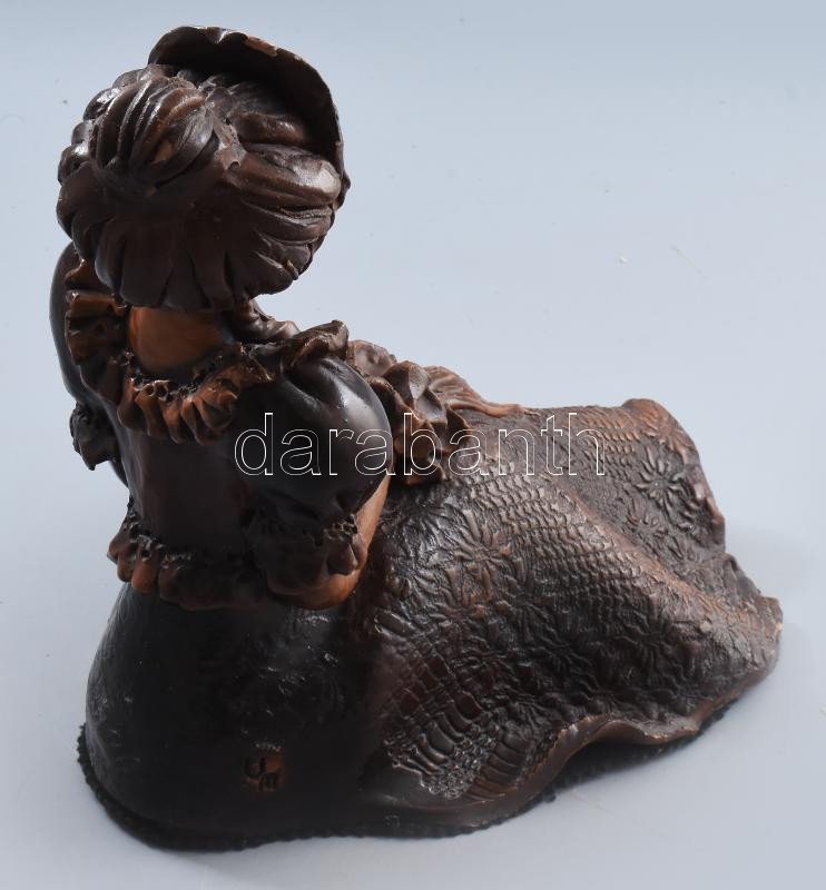 U.M. jelzéssel: Lány, virágcsokorral. Mázas keármia, jelzett, minimáli...