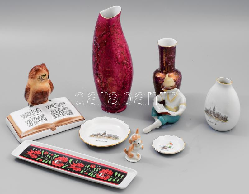 10 darabos magyar porcelán és kerámia tétel, közte érdekes Hollóházi d...