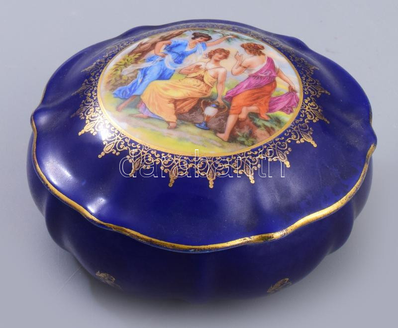 Drasche historizáló bonbonier, jelzett, kopással, d: 10,5 cm