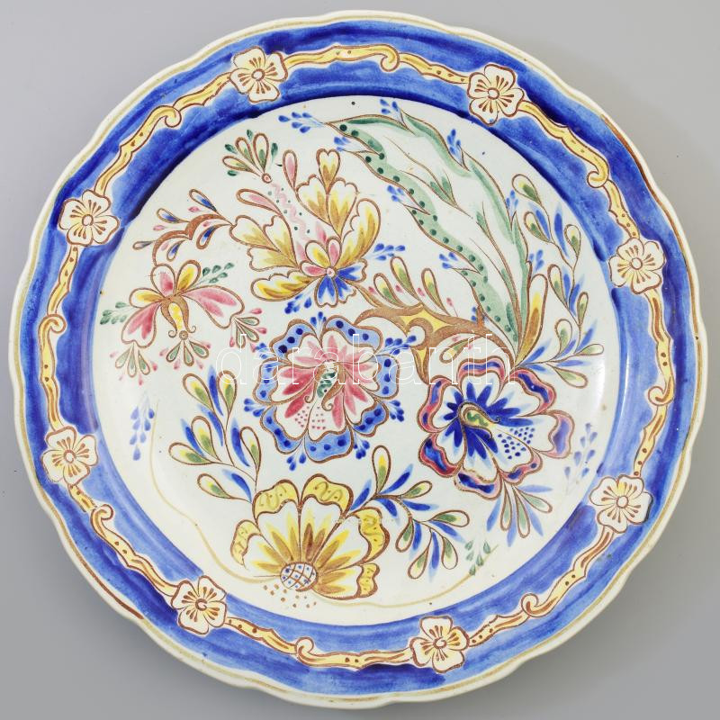 Nagyméretű porcelán dísztál, jelzés nélkül, d: 40 cm /// KIZÁRÓLAG SZE...