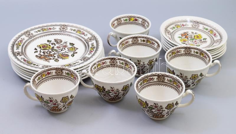 Wood & Sons "Borset" angol 6 személyes reggeliző készlet, csészék aljakkal és desszertes tányérok. Jelzett, csészékben mázrepedéssel, d: 20 cm