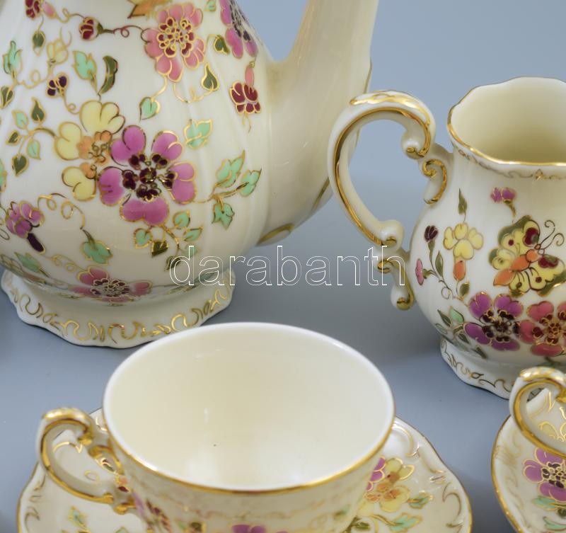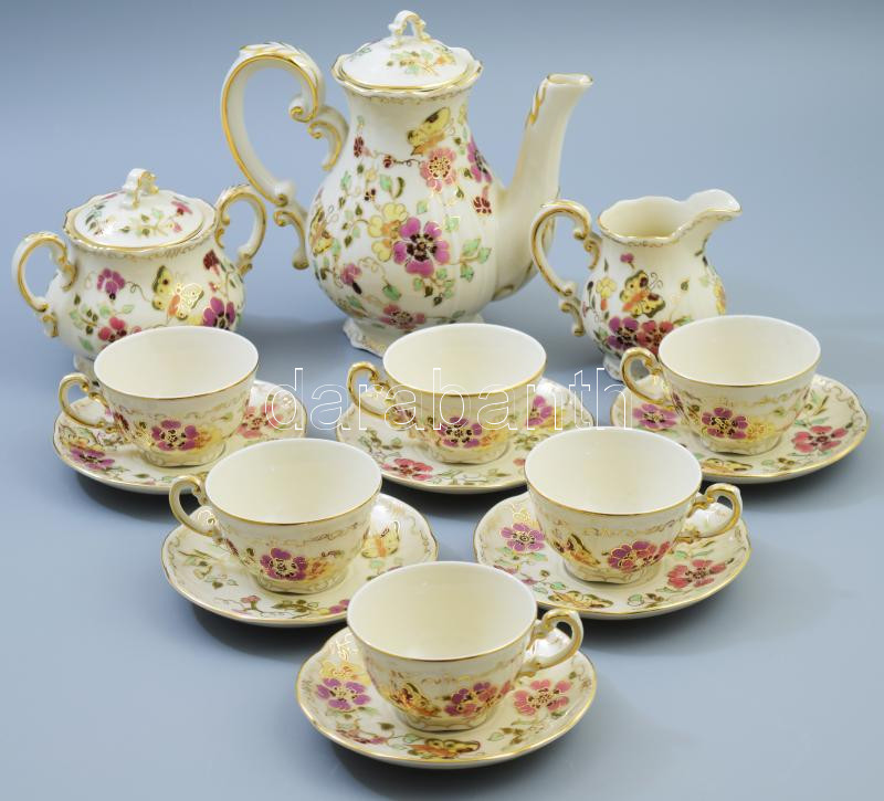 Zsolnay pillangó mintás mokkás készlet. Hat személyes. Kézzel festett,...