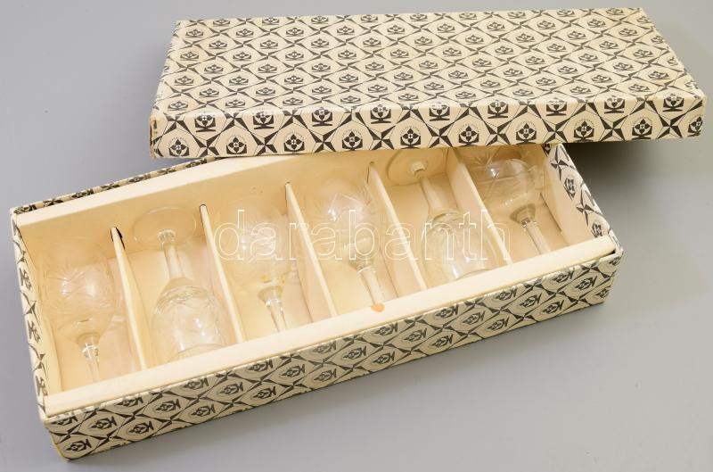 Csehszlovák kristály likőrös pohár szett, 6 db, díszdobozban, m: 11,5 ...