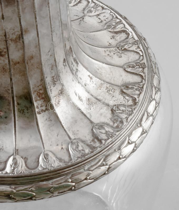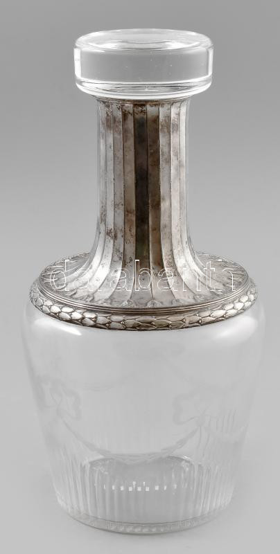 Kristály italos dugós üveg, ezüstözött fém szerelékkel, jelzett, patto...