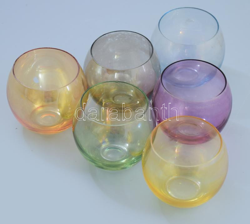 Rtro színezett gömbpohár készlet, kis kopással, 6 darab, m: 6 cm