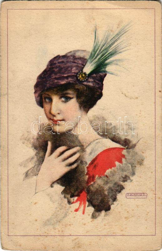 Lady art postcard. B.K.W.I. 133-3. s: F. Schmidt (fl)