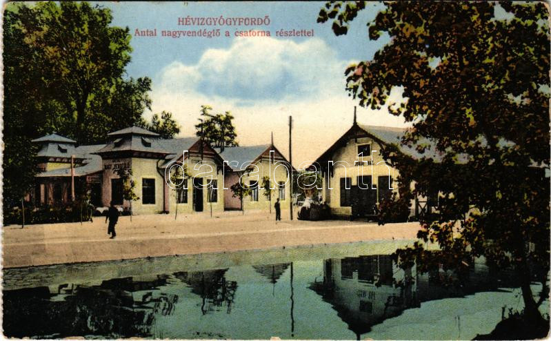 1913 Hévíz, Antal nagyvendéglő a csatorna részlettel, étterem, Jókai h...