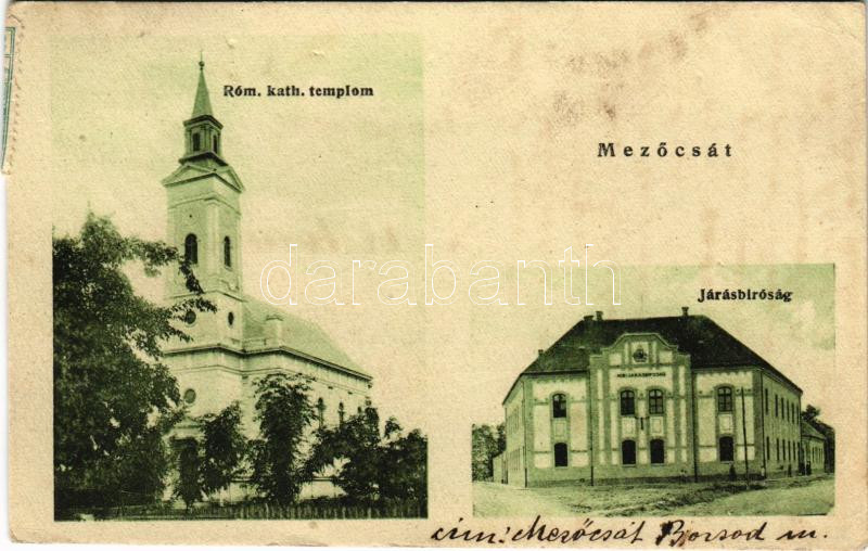 Mezőcsát, Római katolikus templom, Járásbíróság. Hangya szövetkezet kiadása (fl)