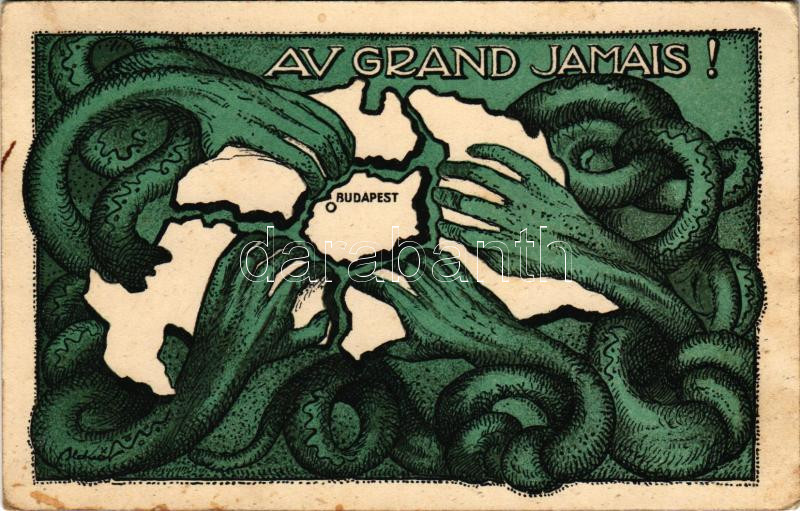 1920 Népeinkkel fizetni számláitokat? Soha! Soha! / Au Grand Jamais! / Hungarian irredenta art postcard (EK)