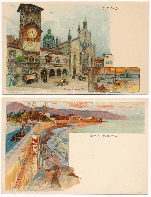 Description: 17 db RÉGI olasz litho képeslap vegyes minőségben / 17 pre-1945 Italian litho postcards in mixed quality, J. Velten edition, E. Nister, signed by Manuel Wielandt