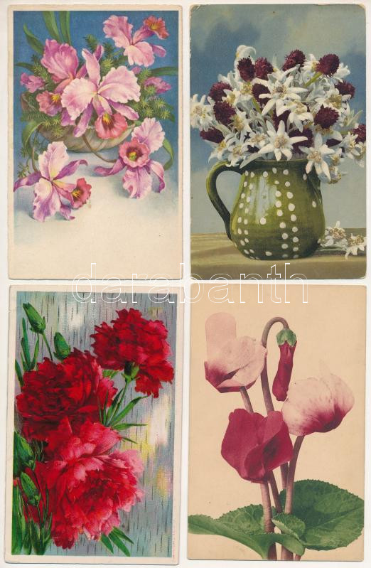 30 db RÉGI virágos üdvözlő motívum képeslap / 30 pre-1945 flower greeting motive postcards