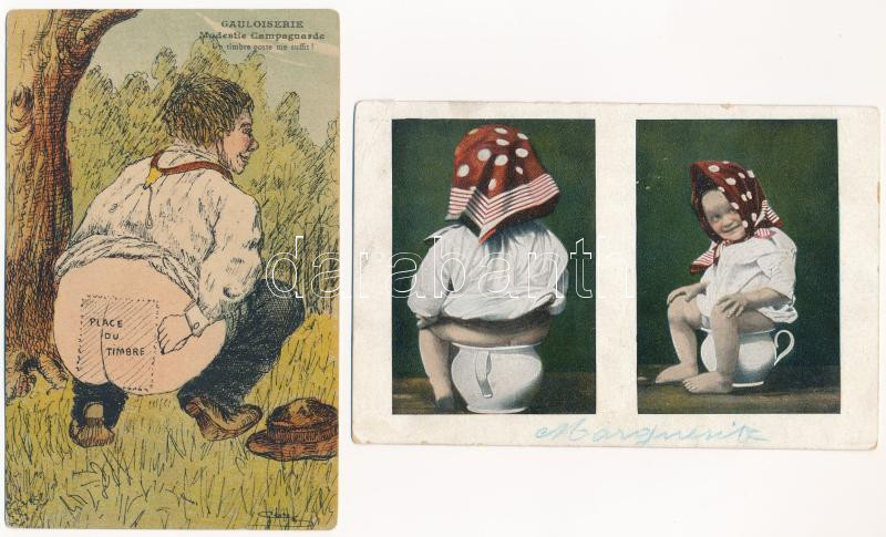 9 db RÉGI humoros képeslap vegyes minőségben: pisilés / 9 pre-1945 hum...