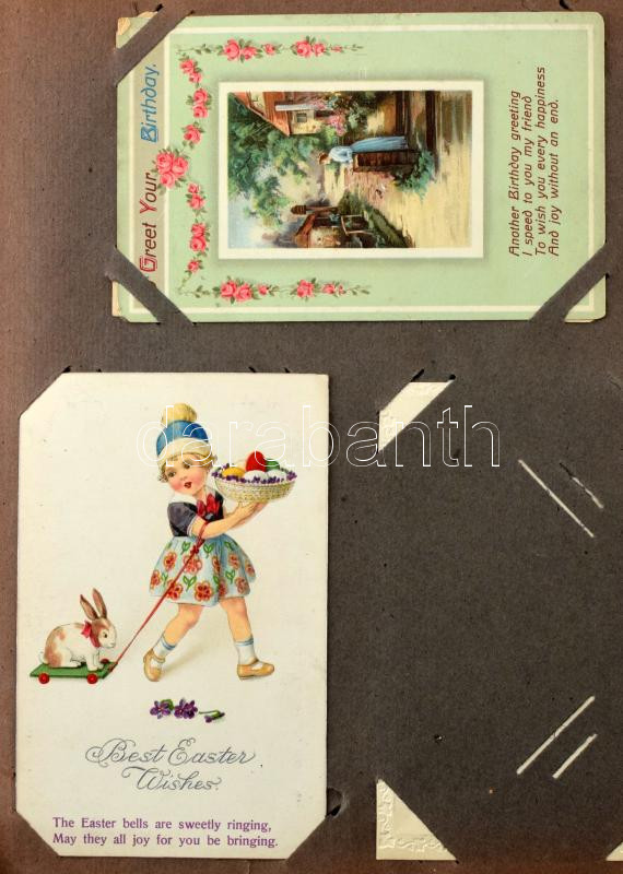 Kb. 200 db RÉGI angol üdvözlő képeslap egy nagy régi szakadt albumban,... https://www.darabanth.com/en/477-Online-auction/477.0/Postcards/Postcard-lots~1500003/Kb-200-db-REGI-angol-udvozlo-kepeslap-egy-nagy-regi-szakadt-albumban-vegyes-minosegben-C~II3252578