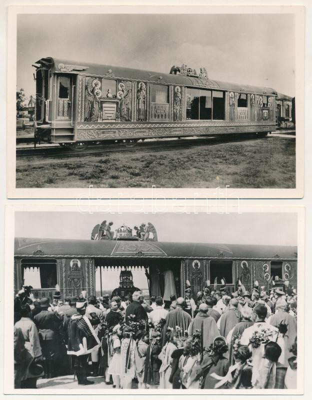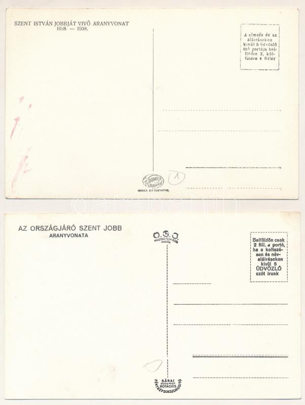 1938 Az Országjáró Szent Jobb Aranyvonata - 2 db régi képeslap