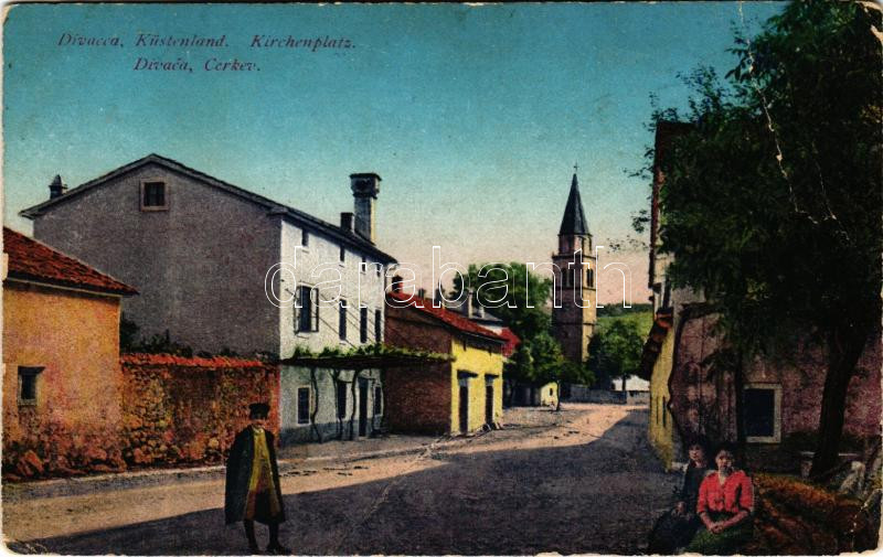 Divaca, Divacca, Divaccia; Kirchenplatz / Cerkev / church, street view...