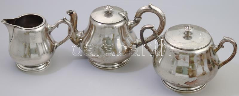 Berndorf teás készlet. Alpakka. XX: sz. eleje. Jelzett, kis kopással. Három darabos, teás kanna, cukordoboz, tejszínkiöntő