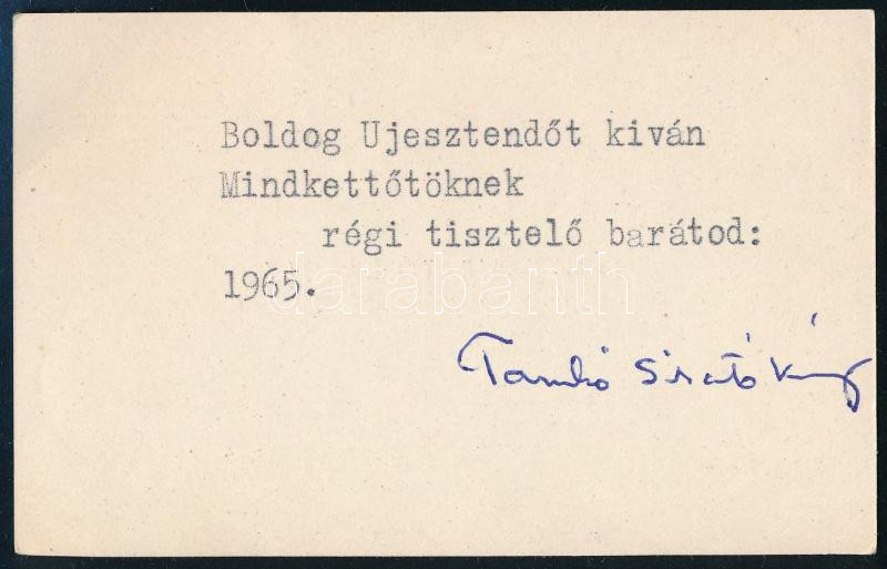 Tamkó Sirató Károly (1905-1980) József Attila-díjas költő, műfordító autográf aláírása saját névjegykártyáján