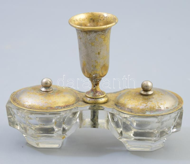 Asztali só és borstartó, fém, üveg. 13x10 cm