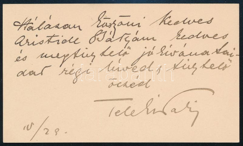 https://www.darabanth.com/en/478-Online-auction/478.0/Art-and-other-collectibles/Historical-documents-manuscripts~500021/1910-Teleki-Pal-1879-1941-kultuszminiszter-miniszterelnok-autograf-sorai-nevjegykartyajan~II3255127