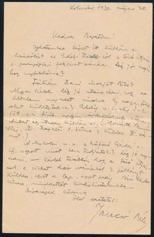 1930 Kolozsvár (Cluj), Jancsó Béla (1903-1967) erdélyi magyar orvos, k... https://www.darabanth.com/en/478-Online-auction/478.0/Art-and-other-collectibles/Historical-documents-manuscripts~500021/1930-Kolozsvar-Cluj-Jancso-Bela-1903-1967-erdelyi-magyar-orvos-koziro-kritikus-orvosi~II3261850