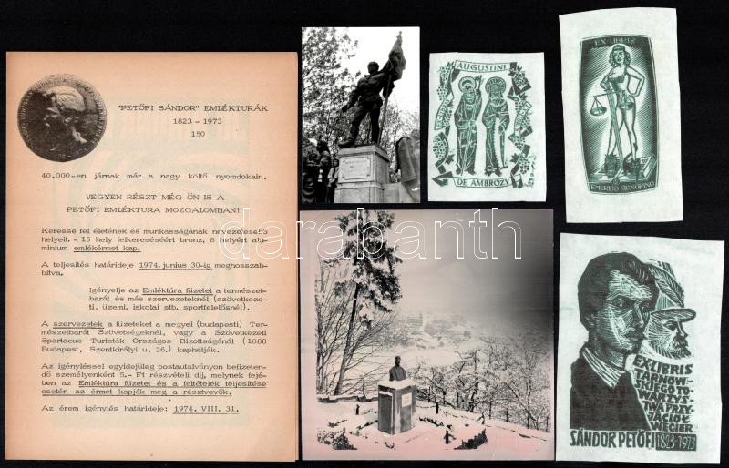 1973 Petőfi Sándor Emléktúrák - Petőfi 150 szórólap, ex librisek másolatai, 2 db fotó