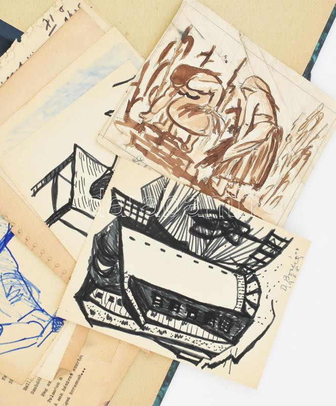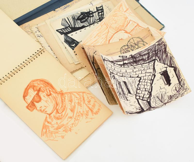 Description: D. Borbély Gizella (1920-1994) festőművész hagyatéka: rajzok, versek, vázlatfüzet, rajzokkal, feljegyzéssekkel, saját versekkel, 1971. Egyes lapok a hátoldalukon jelzettek. 18x24 cm