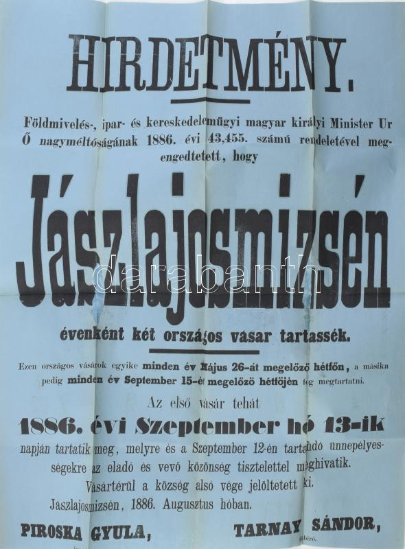 https://www.darabanth.com/en/478-Online-auction/478.0/Art-and-other-collectibles/Printed-Materials~294/1886-Jaszlajosmizse-vasarrol-szolo-hirdetmeny-Nagy-plakat-Kis-serulessel-45x60-cm~II3262079